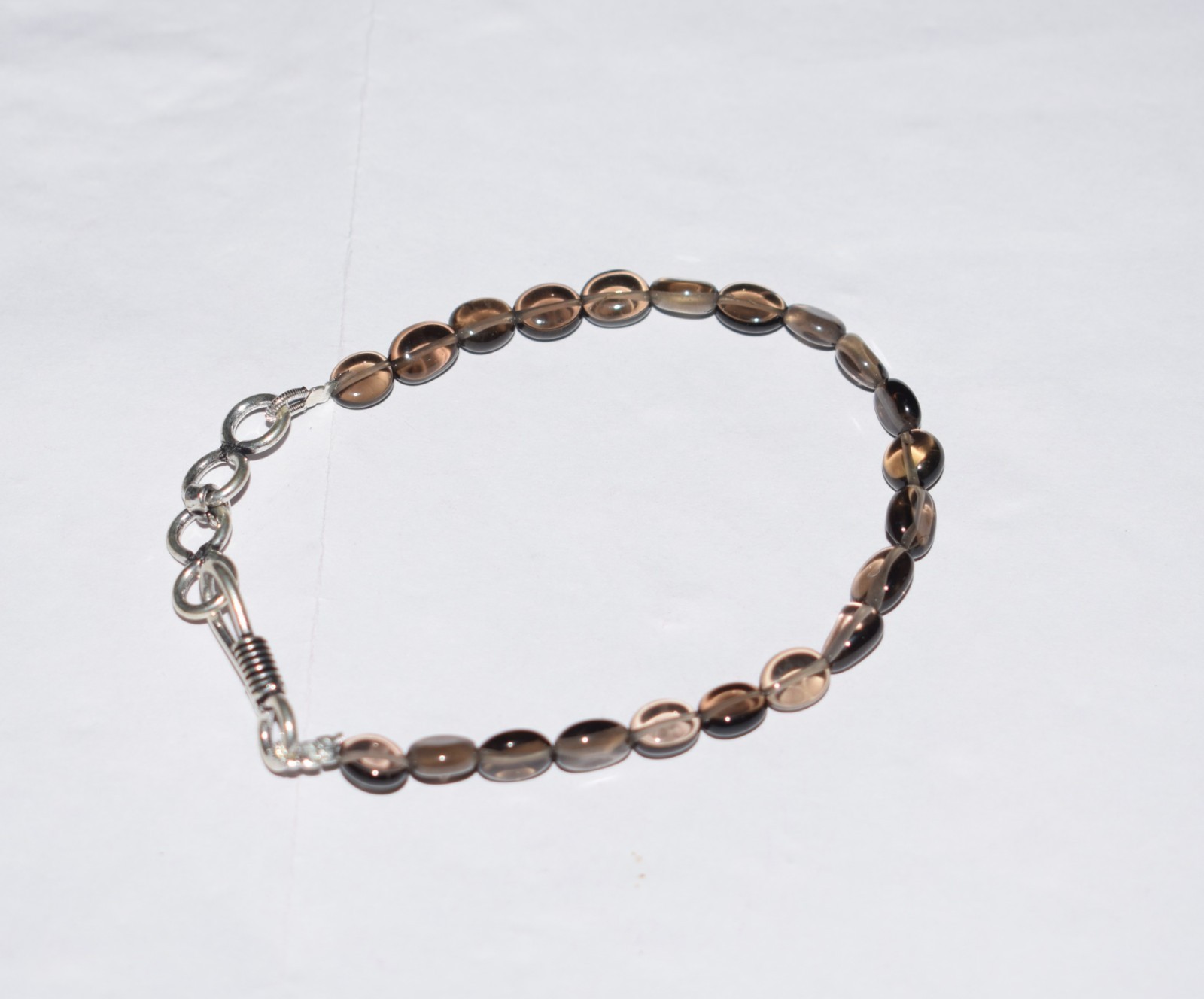 925 Silber Armband mit natürlichem Rauch Quarz Glatt Perlen 5×7, 6x8mm 20,3cm