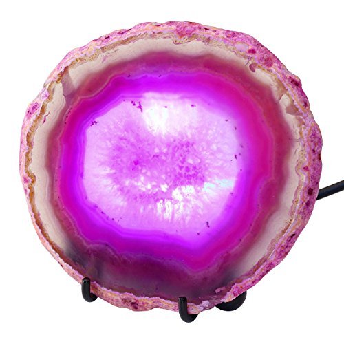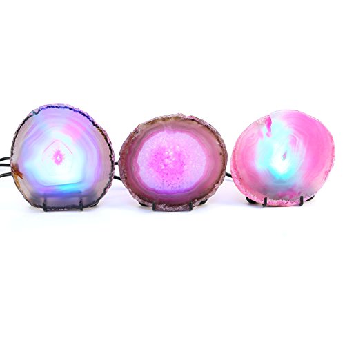 JOVIVI Edelsteine LED Achat Tischlampe Agate slice Nachtlicht Achat Geode trennbar Leuchte Deko mit Metall dreibeinig Unterlage USB Kabel