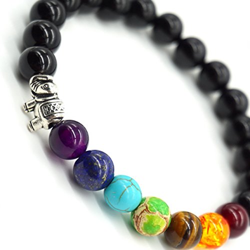Elastic Strand Bracelet & Bangle for Women and Men.Handmade Chakra Stone Bangle Made of Nature Stone, This Charm Beaded Bracelets is elastic and can fit most wrists!