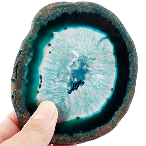 Achat ist der Kristall der Schutz, Kraft und Harmonie. Es ist bekannt für ausgleichende Yin/Yang Energie, Mut, Schutz, Heilung und beruhigend. Achat verbessert Kreativität und stärkt den Intellekt. Emotional, Achat verleiht Mut, emotionale Stärke, Selbstbewusstsein, und schützt Ängste. Achat soll stärken den Körper und die Verbindung zur Erde des Körpers.Dimension: 8-10cm, Dicke: 0.5cm, Gewicht: ca 75-135 gramm, Set aus 2 Achat-Untersetzer, poliert um die attraktiven Muster zu akzentuieren und gefärbt um die Farbe zu verbessern. Einzigartiges Design — Aus natur achat geodes, kristall geode quarz innen und poliert außen. Der rand dieser Achat-Untersetzer ist natürlich um die natürliche schönheit des Achat-Steins zu zeigen. Leicht zu reinigen & Sicherheit — polierte Ausführung auf beiden Seiten macht es einfach für Sie zu leicht entfernen Staub, es auch für können Ihr Tisch ohne Angst von Kratzern und speichern Sie Ihre Hand nicht zerkratzt. Funktionen — Ideal Tasse Matte für Getränke. Es kann verwendet werden als Tischdecke Mat, Bar Service, Poolseite, Deko oder Tischdekoration zu schützen Oberflächen aus Holz Tisch. Merken Sie bitte: Wegen jeder Untersetzer ist Unikat, können sie in der Größe, Farbe und Form leicht variieren, und Sie erhalten eine ähnlich wie die bilder gezeigt.