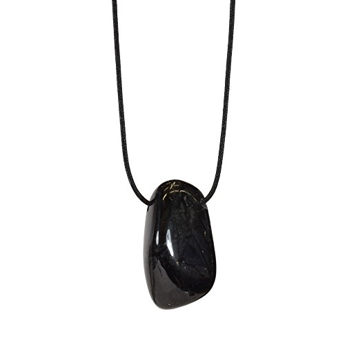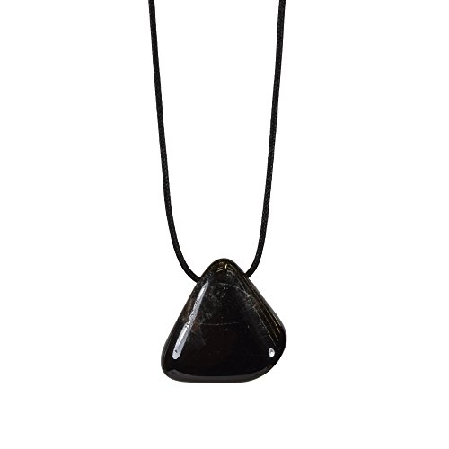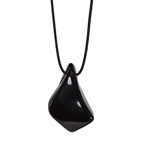 Ein originelles Schmuckstück. Ein schwarzer Turmalin Anhänger an Textilband. Der Schörl ist ein bekannter Energiestein und wird sehr gerne von Esoterikern genutzt.
