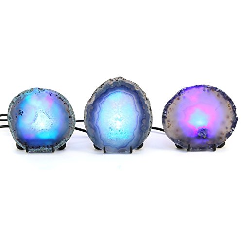 JOVIVI Edelsteine LED Achat Tischlampe Agate slice Nachtlicht Achat Geode trennbar Leuchte Deko mit Metall dreibeinig Unterlage USB Kabel