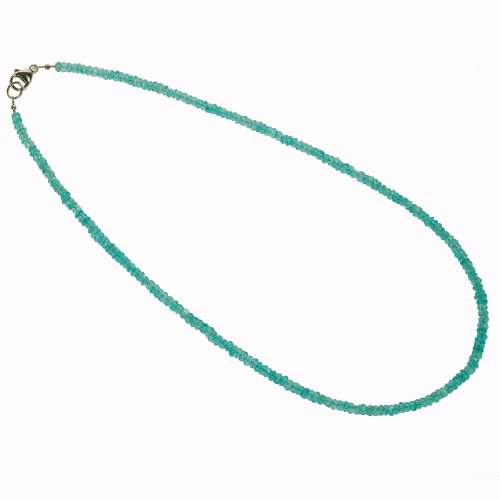Apatit, neon-petrol semi-transparent, in fein facettierten Buttons geschliffen ca. 3X2MM und wunderbare, hochglänzend poliert, ca. 46CM lang, geschlossen mit 925oo Silber Karabiner.