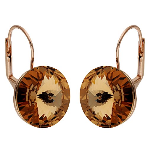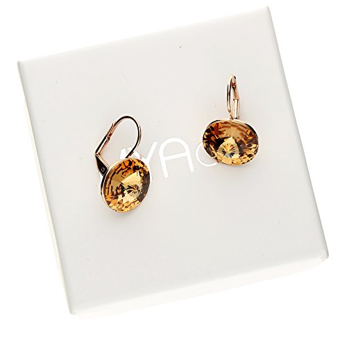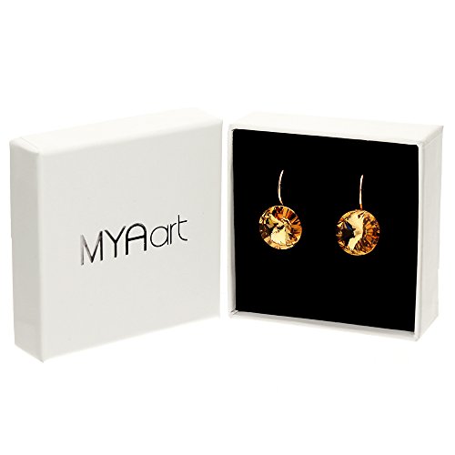Wir versenden alle unsere Produkte in einer einzigartigen und besonders hochwertigen Geschenkverpackung. So ist jeder Einkauf bei MYA art® wie ein ganz persönliches Geschenk – ganz gleich ob Sie den Schmuck für sich oder jemand anderes kaufen. Machen Sie sich oder Ihren Liebsten ganz einfach eine ganz besondere Freude mit Produkten aus der MYA art®-Kollektion.1 Paar kurze dezente hängende Damenohrringe in Rosefarben mit runden goldenen Rivoli Kristallen der deutschen Marke MYA art®