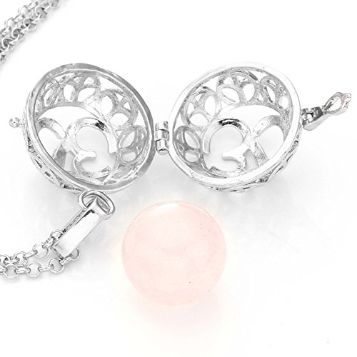 – Material: Rosenquarz,Kupfer,Legierung – Karabiner Verschluss an der Kette – Innerdurchmesser des Anhänger: ca. 20mm – Kettenlänge: ca. 71-75cm(Silber), 80-86cm(Roségold & Gold) – Kugel Durchmesser: ca. 16 mm – dazu passender Engelsklingel Anhänger Halskette – Lieferung: 1x Anhänger, 1x Halskette, 1x Steinkugel -Mit einem “Jovivi” Geschenk Samtbeutel,aber Eine Bestellung nur von einem