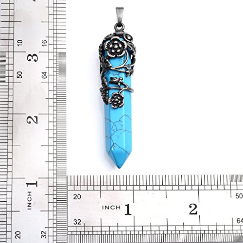 JOVIVI Edelstein Schmuck, Natur Steine Damen Blume Wire Wrap Hexagon Säulen Chakra Anhänger Pendant mit Kette