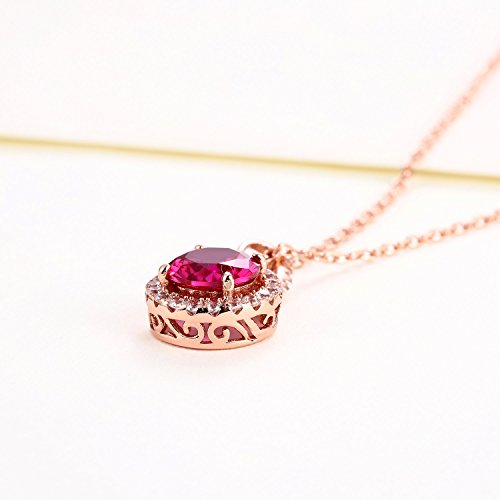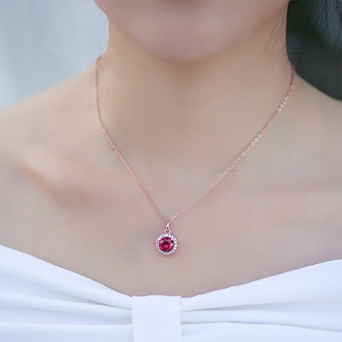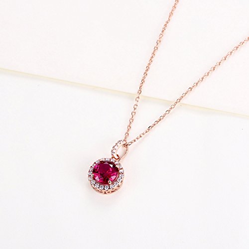 ❣ Mit 925 Sterling Silber und 18k Roségold Rhodium, dazu ein Anhänger mit einem 8.0mm großem geschliffenen roten Rubin-Mittel-Stein mit einem Rahmen von schimmernden runden weißen kubischen Zirkonoxid.