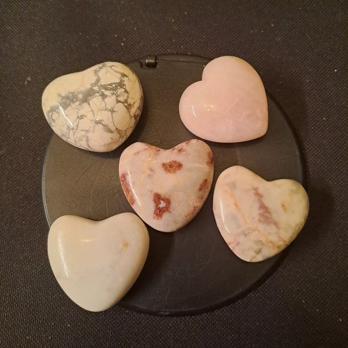 Edelstein-Herzen Konvolut 5 Stk – Jaspis, Rosenquarz, Marmor (?)
