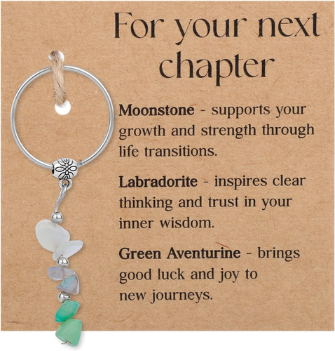 Schlüsselanhänger aus Naturkristall, Glücksbringer mit Mondstein Labradorit und