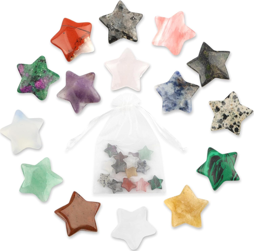 Stern Edelsteine, 15 Stück Kristalle Heilsteine Glücksbringer, Glückssteine mit