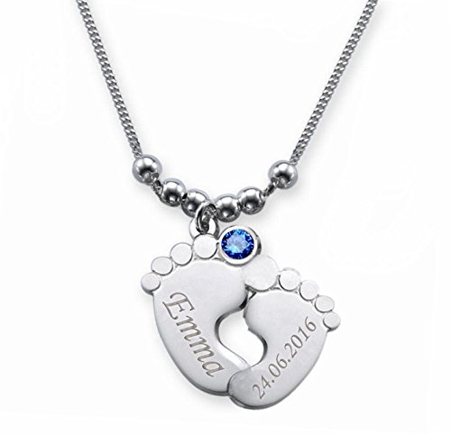 Tragen Sie die Namen + Geburtsdatum Ihrer Kinder auf süßem Anhänger mit 2 Babyfüßchen in Edelstahl!