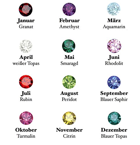 Wählen Sie die passende Geburtssteinfarbe für den jeweiligen Geburtsmonat in dem Ihr Kind geboren ist.
